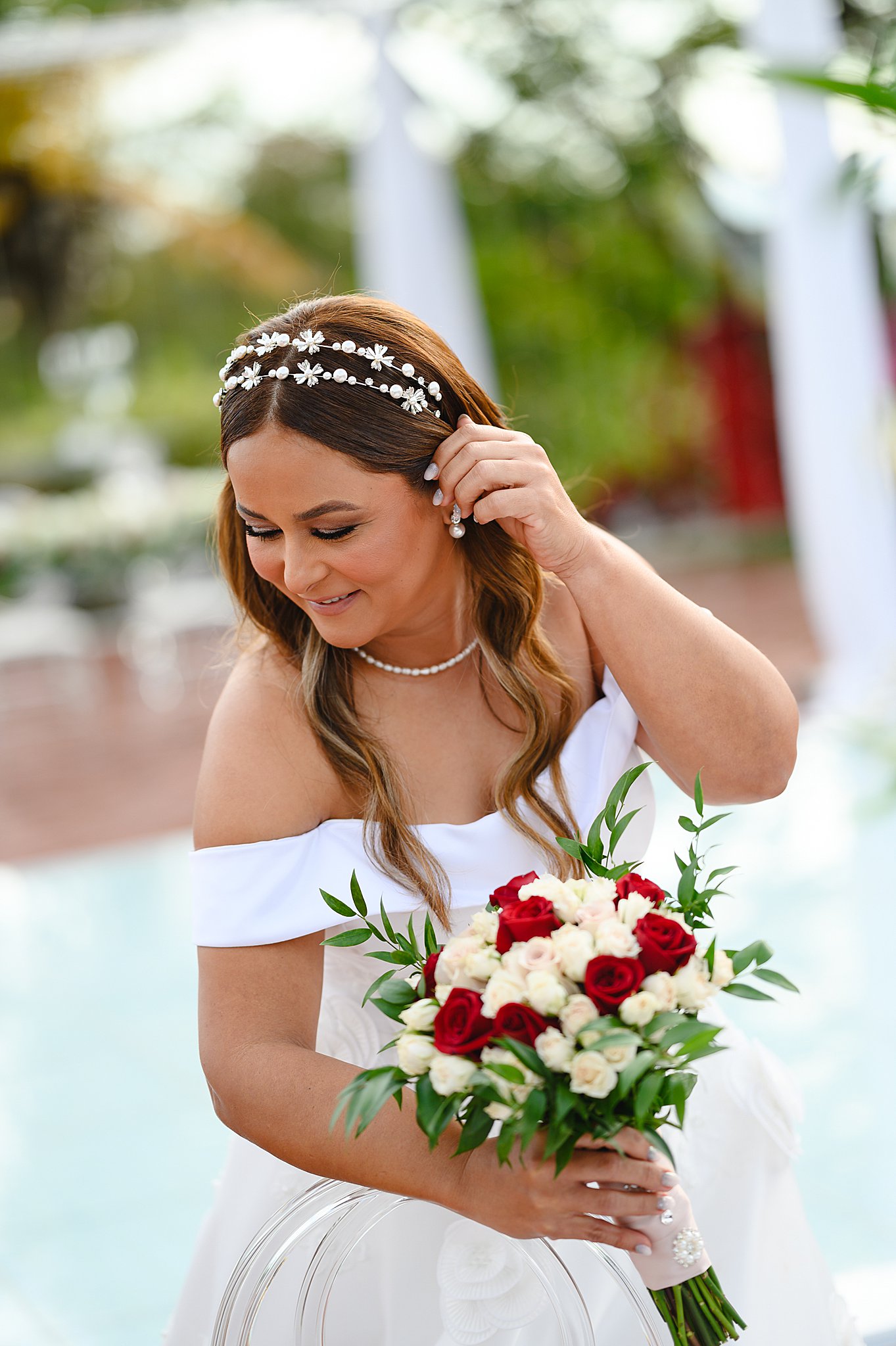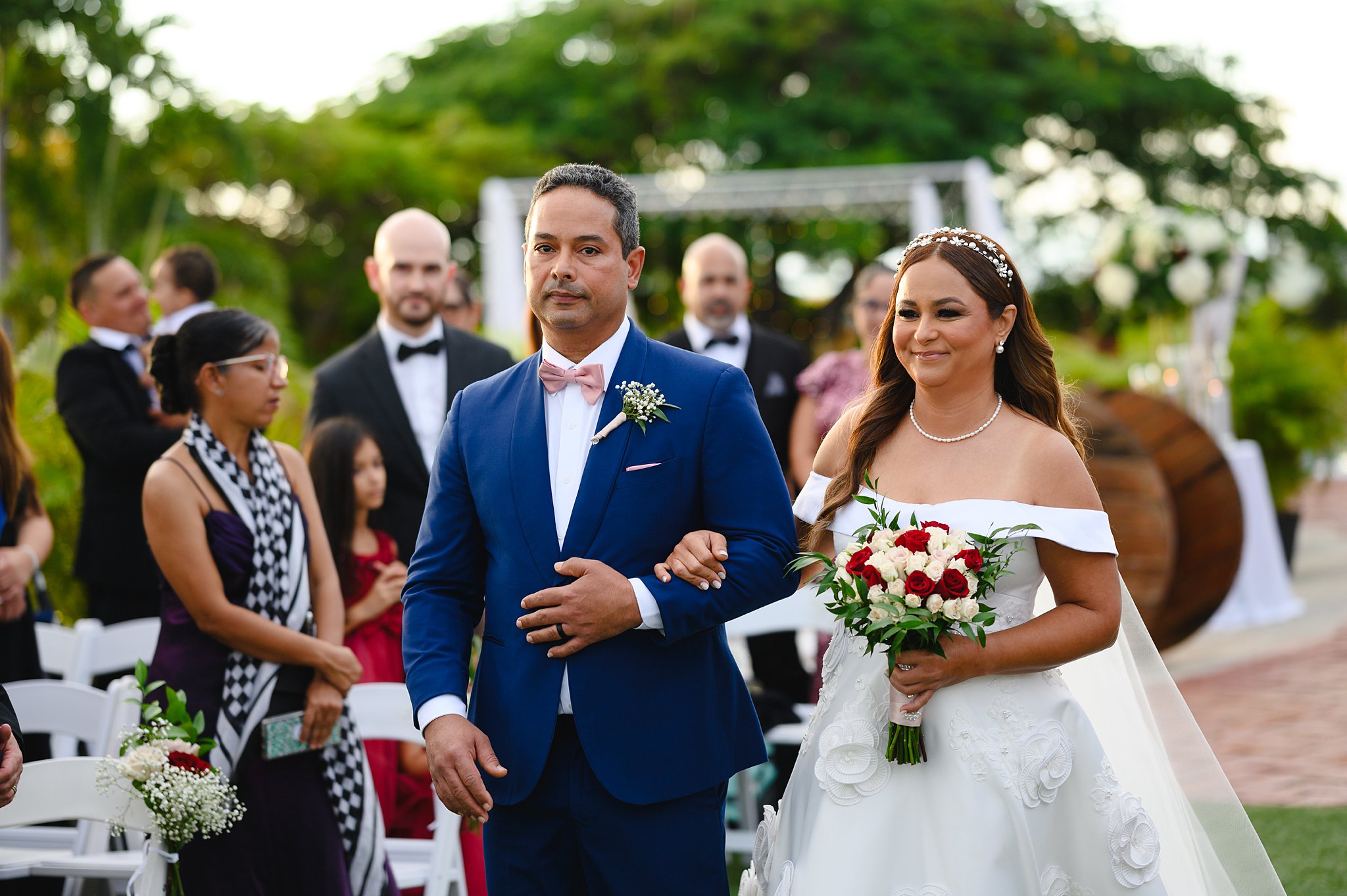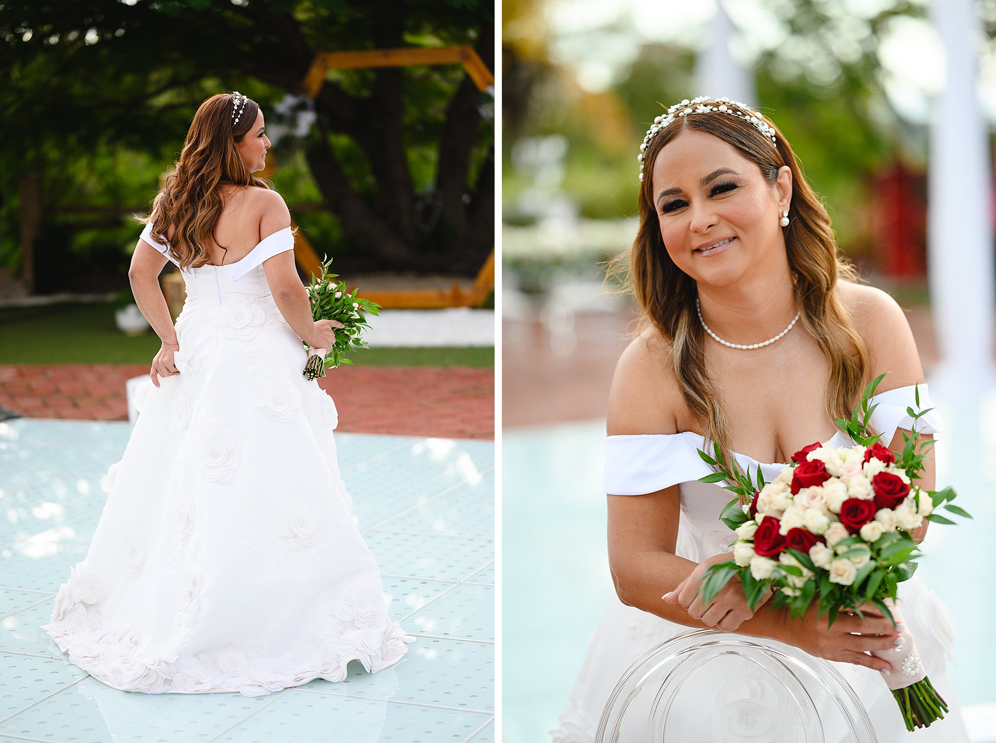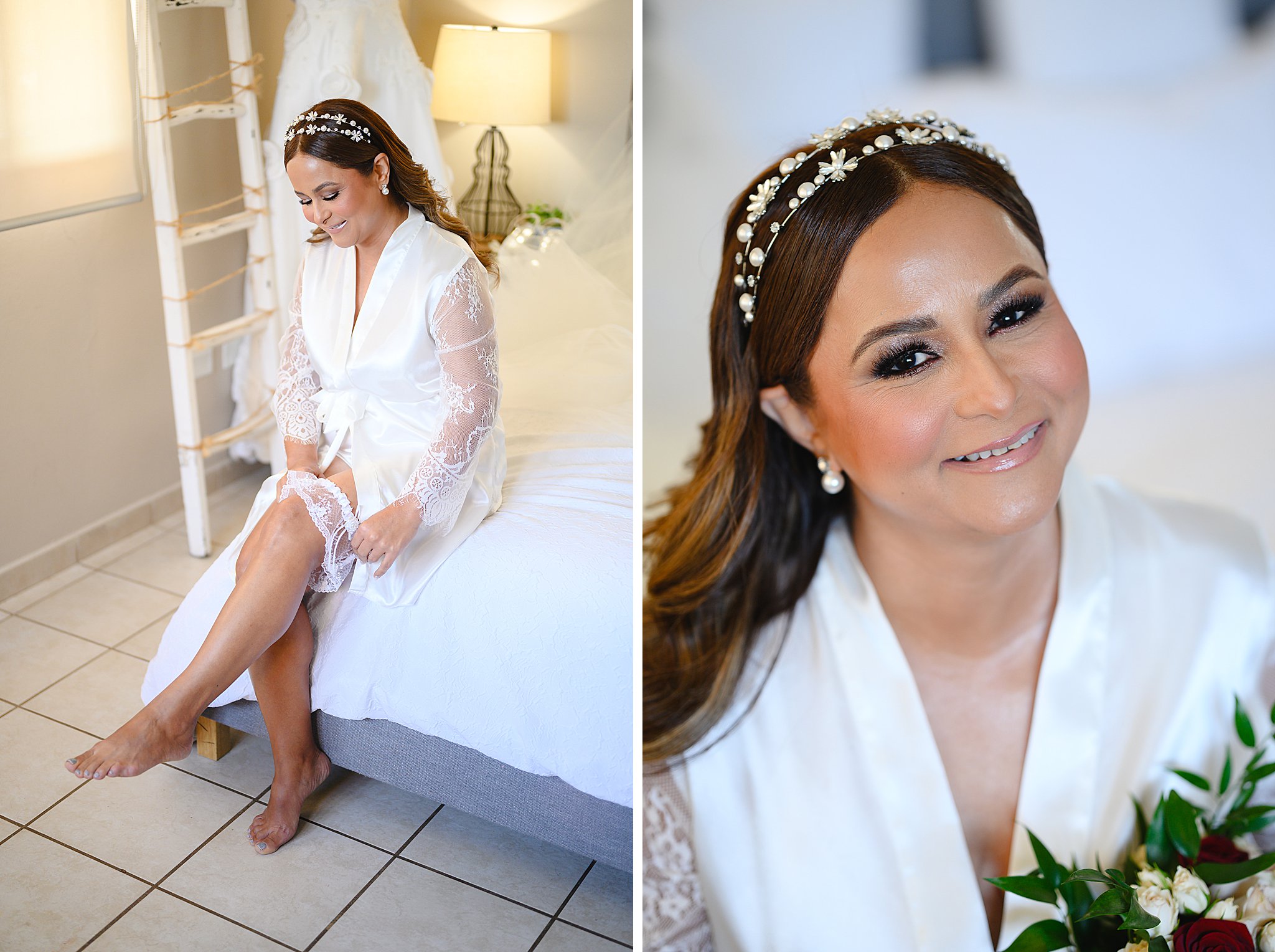 Desde el momento en que llegamos a la hacienda, pudimos sentir la magia en el aire. La novia se preparaba en un entorno idílico, rodeada de seres queridos y la elegancia rústica de la hacienda como telón de fondo. Con cada detalle cuidadosamente planeado por Jennifer Acevedo de Occasions Event Decor + Floral Design y coordinado por Christine Franco de Over The Top Events, la atmósfera era simplemente deslumbrante.
