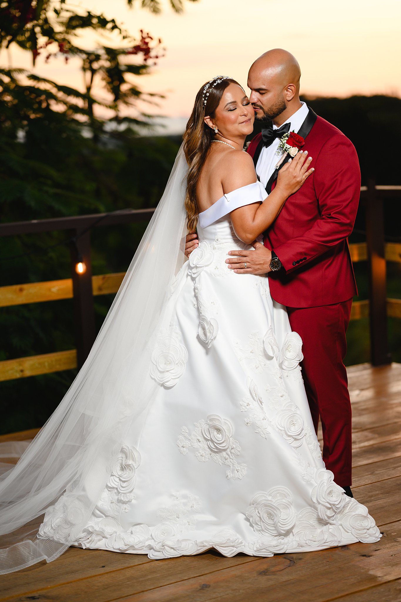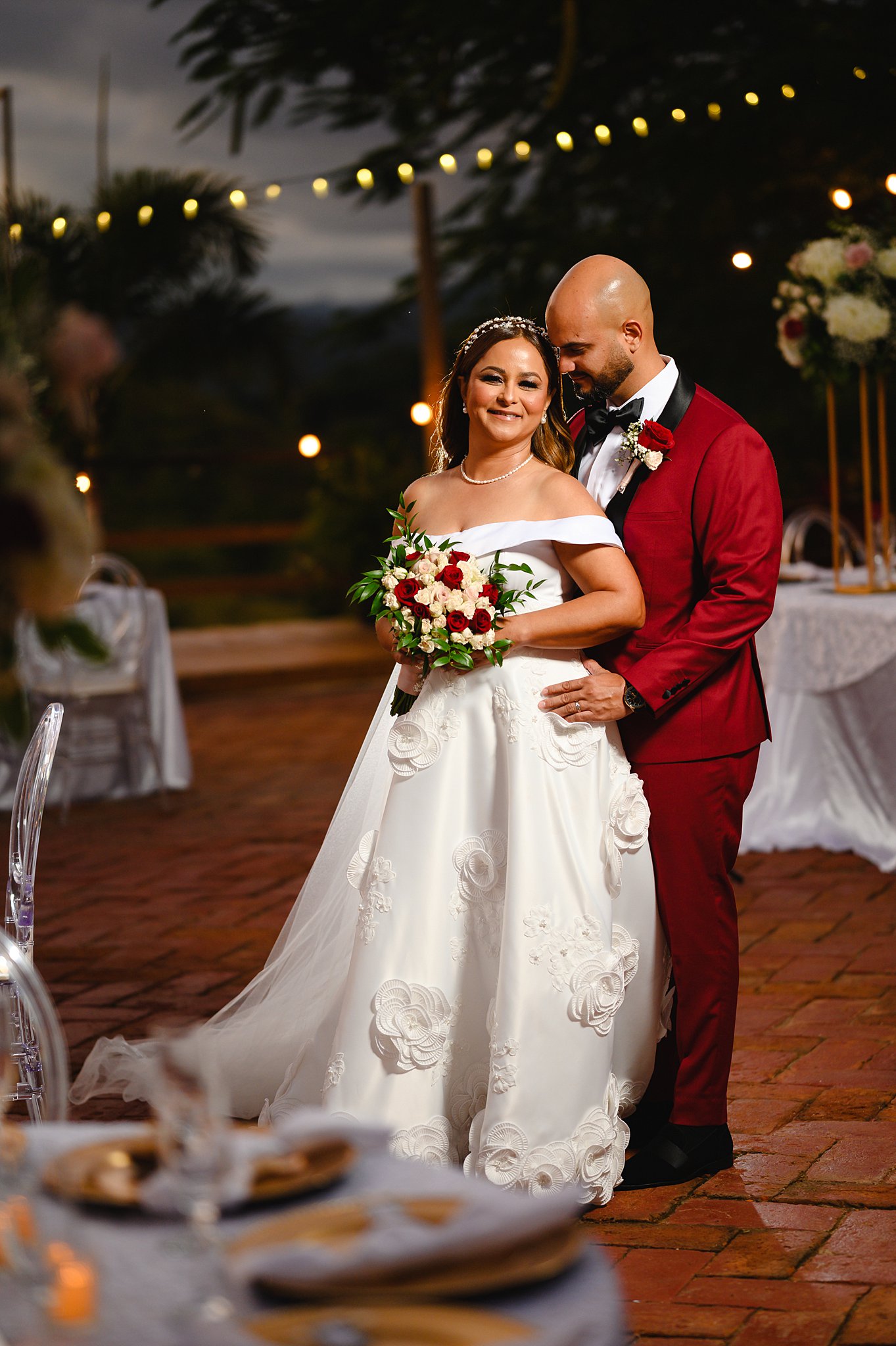 Pero lo más destacado de la noche fue, sin duda, el vestido de novia exclusivamente confeccionado para Limarynette por Delimel Rojas Rivera. Su belleza irradiaba con cada paso que daba, y el amor entre ella y Juan era palpable para todos los presentes.